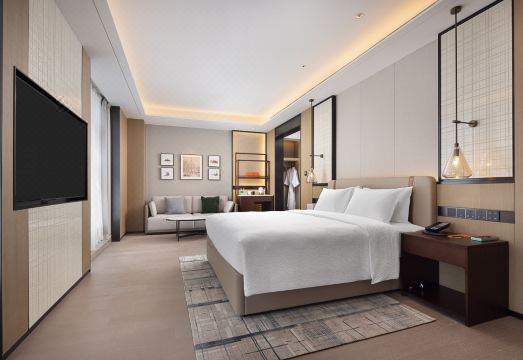 The hotel is equipped with 227 rooms with stylish and elegant design, supporting multi-functional meeting rooms, fitness center, laundromat and other intimate facilities. Rooms use Italian high-end niche bath product Acca Kappa, American famous brand Golden Kerr mattress, century-old brand high-quality down and skin-friendly bed products; equipped with 55-65-inch HD LCD TV to support interactive screen; bathroom is equipped with tropical rain forest bath system, dry and wet separation, etc., to provide guests with a livable and happy living experience.